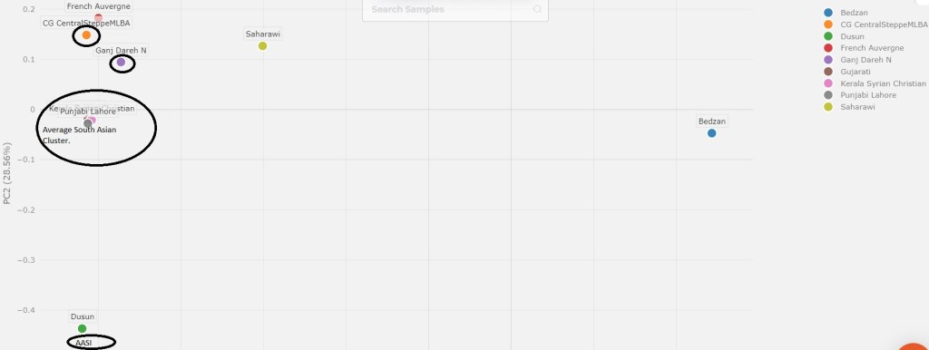 Most South Asians can be genetically described as varying degrees of admixture between (Steppe1, Iranian Related Farmer and AASI) populations except for some groups that possibly have claim descent from Steppe2 related Scythian / Huna ancestry.